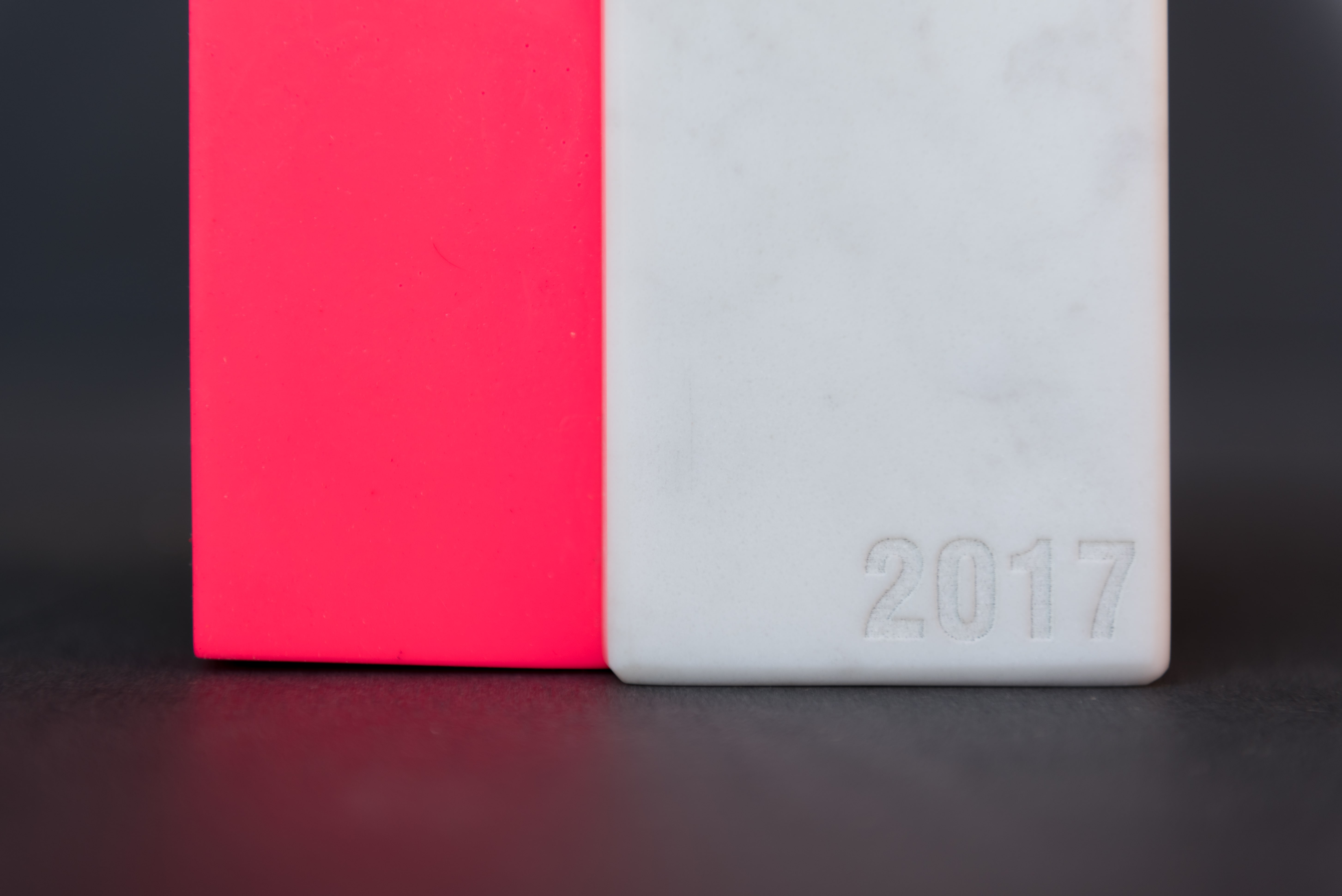 The theme of the festival was ‘Material Matters’ which inspired our concept for the awards which marries two visually contrasting and seemingly incompatible materials: Electric pink silicone with the lowest shore hardness available (to make it super-floppy) and the ironic symbol of opulence Carrera marble.