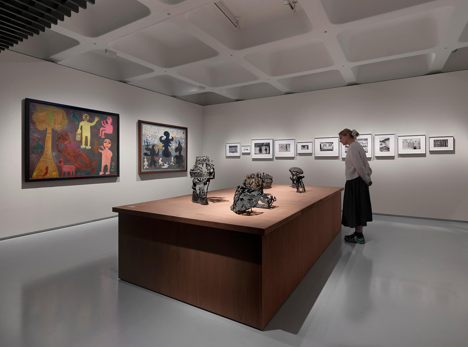 Alongside the technical and material challenges, the installation was shaped by the curatorial ambition to create a space that resonates with the themes of memory, resistance and cultural identity explored in the exhibition. The raw, unfinished textures of the brick and timber sit in contrast to the Barbican’s concrete interiors, echoing both traditional Indian building methods and the exhibition’s postcolonial narratives. The resulting structures help in the storytelling, designed to be disassembled, reused, and reintegrated into the local community, extending its impact beyond the exhibition.